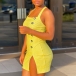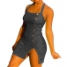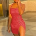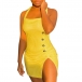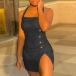 Sexy Backless Slit Hem Front-button Slim Fit Sling Plaid Dress