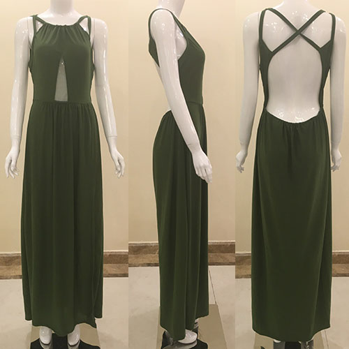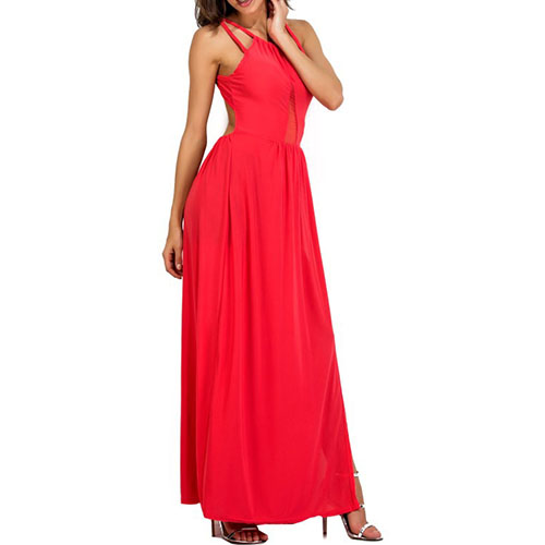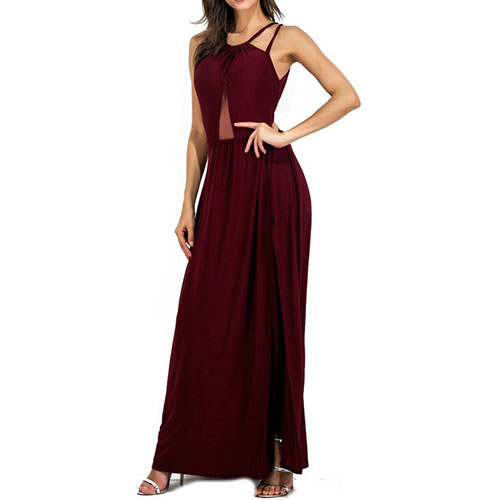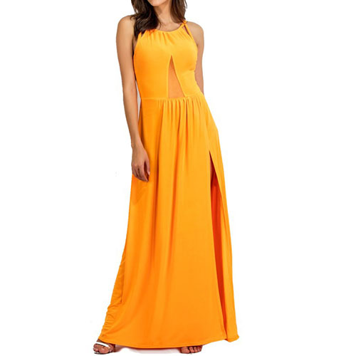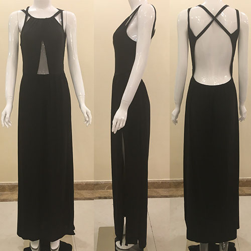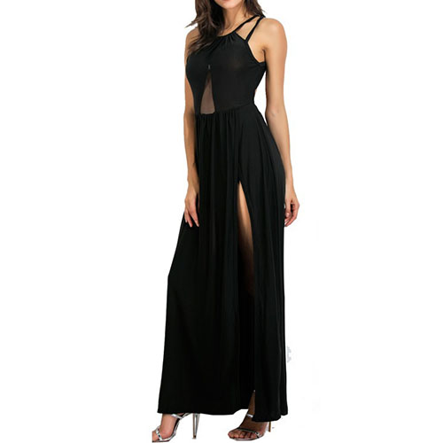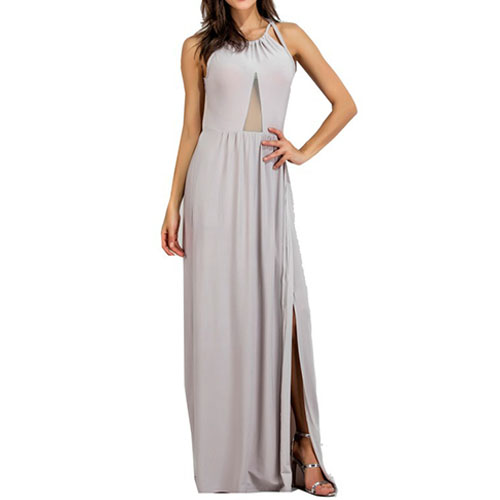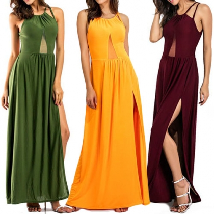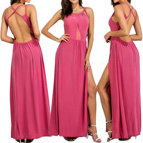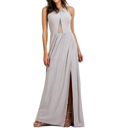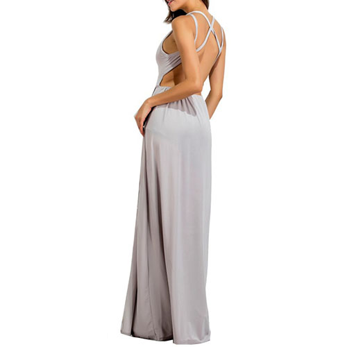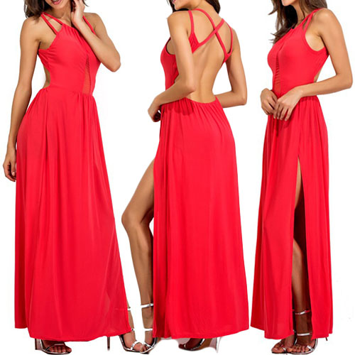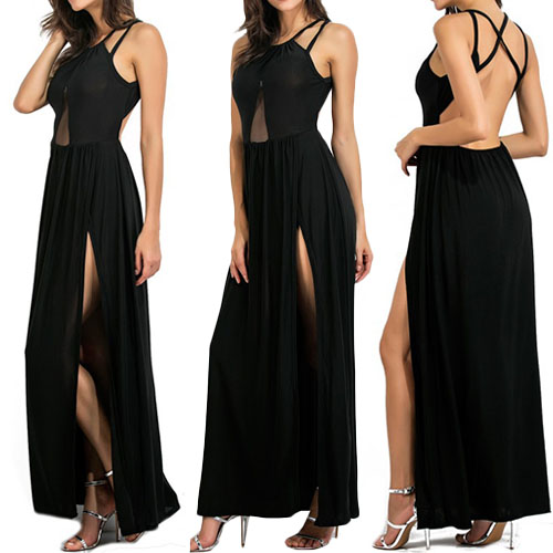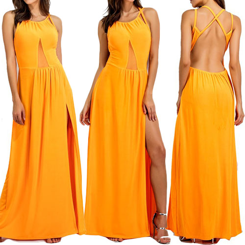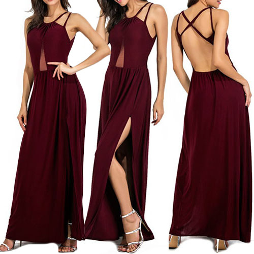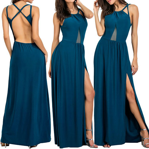 while its backless,slit hem and gauze spliced details for a more alluring and stunning look. This effortless dress