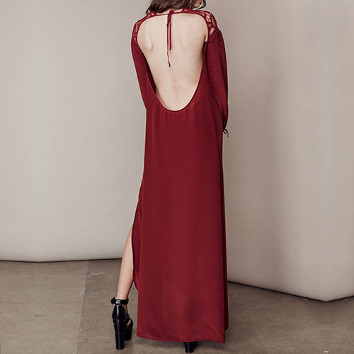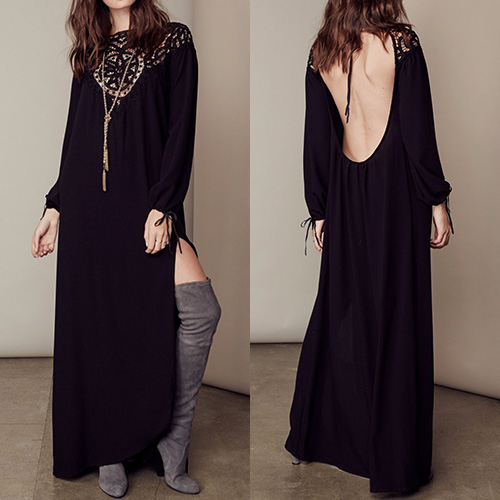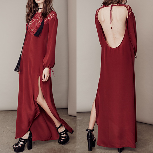 Slip into this maxi dress for a sexy and retro style. Solid color style,its backless,slit hem