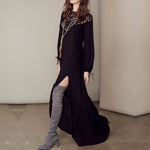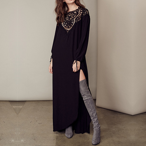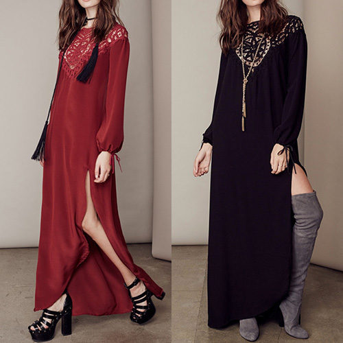 and hollow out lace spliced design makes this dress look so sexy and charming.