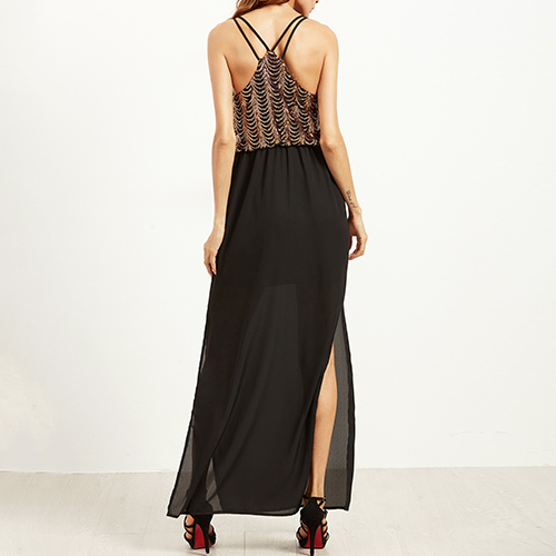 Amplify your sassy appeal with this charming dress. Sling style,designed with backless and slit hem,sexy and