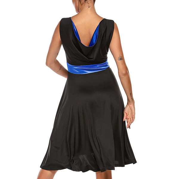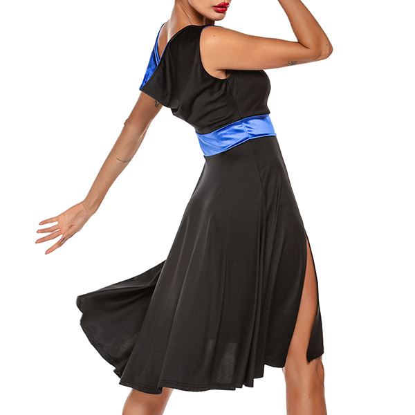 For these dancing lovers,this dancing dress can be their wise choice. Contrast color design at the waist part makes it look not so simple and dull,while the backless and slit hem design will further enhance its feminine appeal. When dancing with this dress,you would be a pleasant sight!