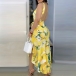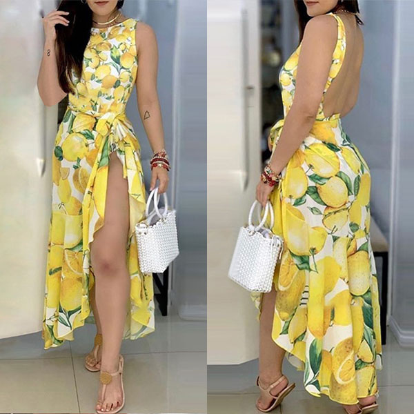 Sexy Backless Slit Hem Sleeveless Printed Dress