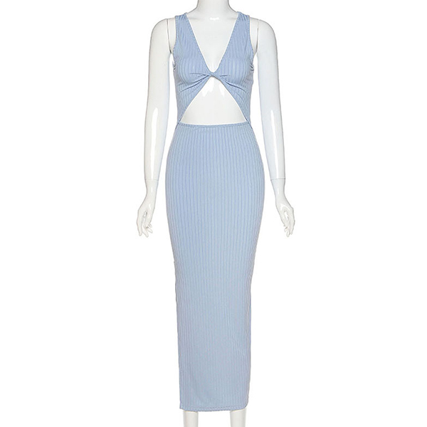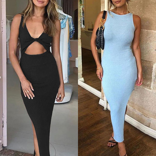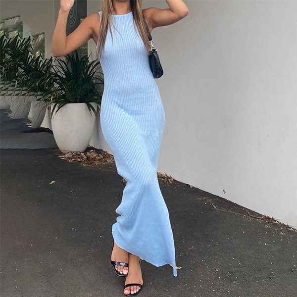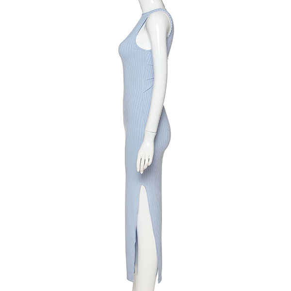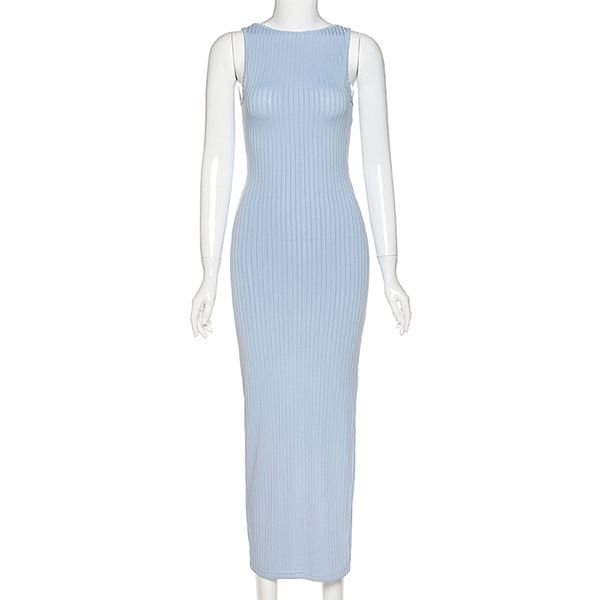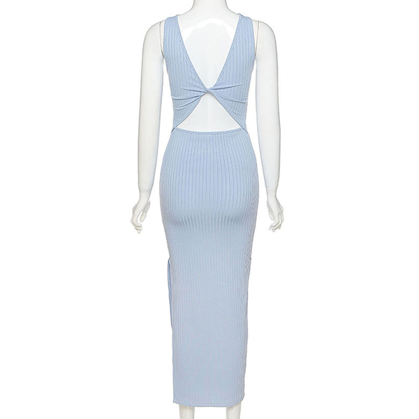 Sexy Backless Slit Hem Sleeveless Round Neck Slim Fit Dress