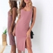 Sexy Backless Slit Hem Sleeveless Solid Color Slim Fit Dress