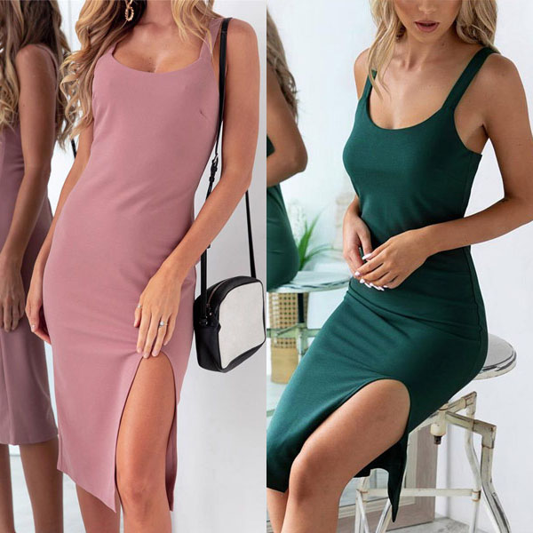 When you wanna flaunt off your perfect figure, you can just throw yourself into this dress. This dress boasts a solid color, the backless and slit hem design will exude your sexy and flirty side. Like this simple but sexy dress? Then let you accompany your wonderful time.