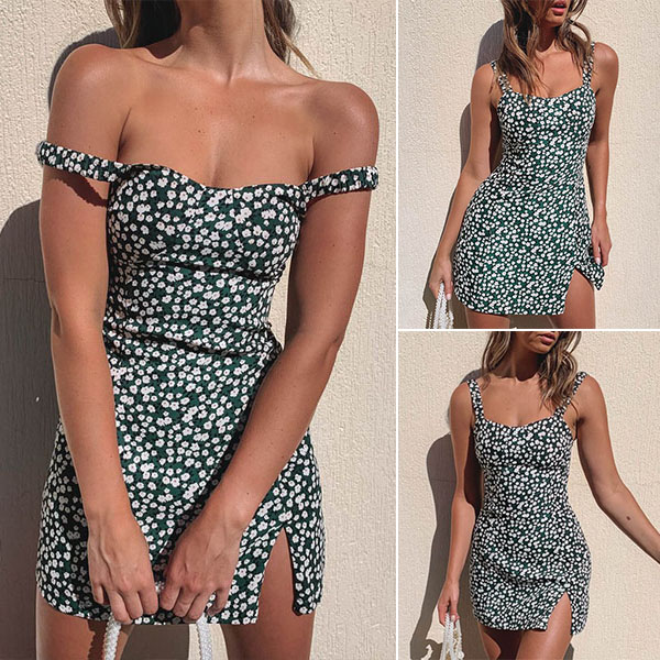 For the sun-soaked summer days,this dress is a good weapon to expose your charming skin and femininity. Its vibrant floral print details will make this piece look more eye-catching. Sling style,with backless,slit hem and a fit silhouette,this dress can make you look alluring as well as showcase your perfect and seductive curve.