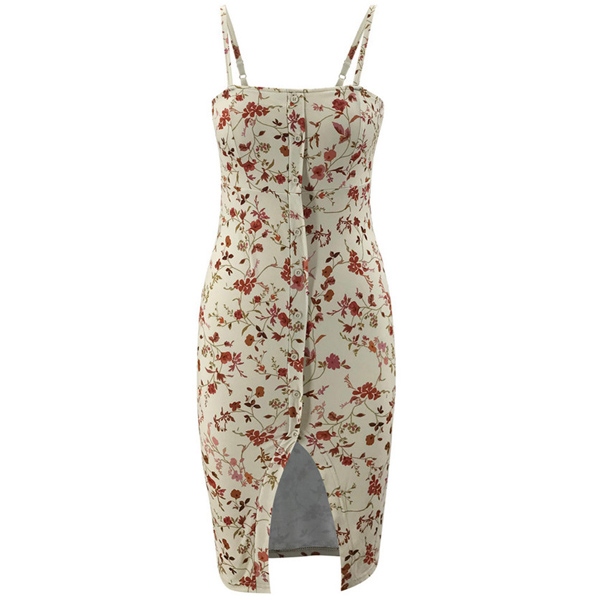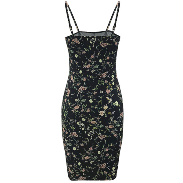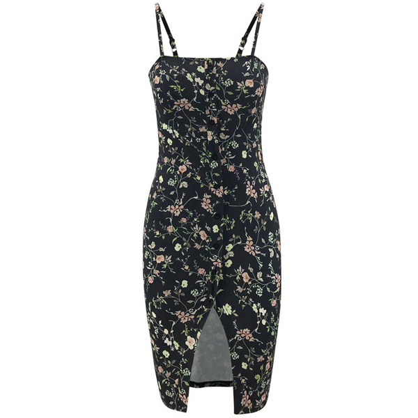 Sexy Backless Slit Hem Slim Fit Printed Sling Dress