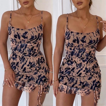 Sexy Backless Slit Hem Slim Fit Printed Sling Dress