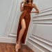 Like the saying goes, if you have it why not flaunt it? Seductive appeal comes easy once you slip into this breathtaking dress. Halter style,designed with backless and slit hem,which can make you look more alluring. For your fancy events like dinner dates and weekend gatherings,you can trust in this dress to win more eyes.