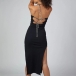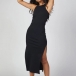 Sexy Backless Slit Hem Solid Color Slim Fit Chain Halter Dress