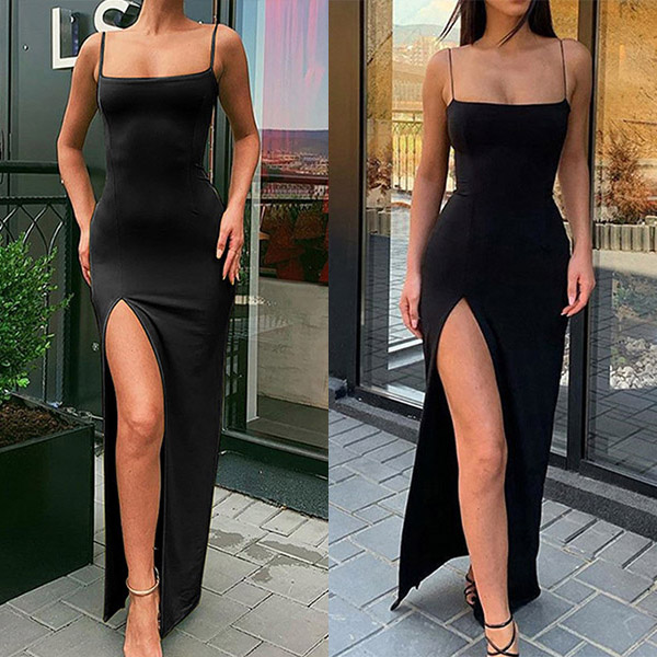 Want to make the maximum impact with minimal effort? Then slip into this flirty dress. Thanks to the backless,slit hem and sling design,this dress can make you look alluring,while the high waist and maxi length design will showcase your seductive and slender figure. For your fancy events,this little stunner can be a wise choice.