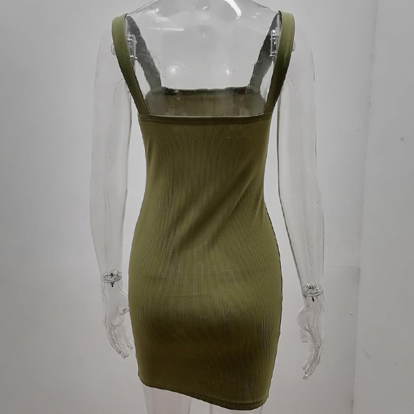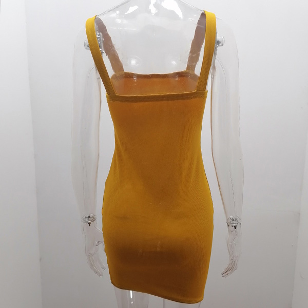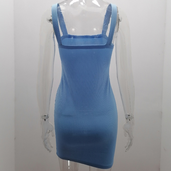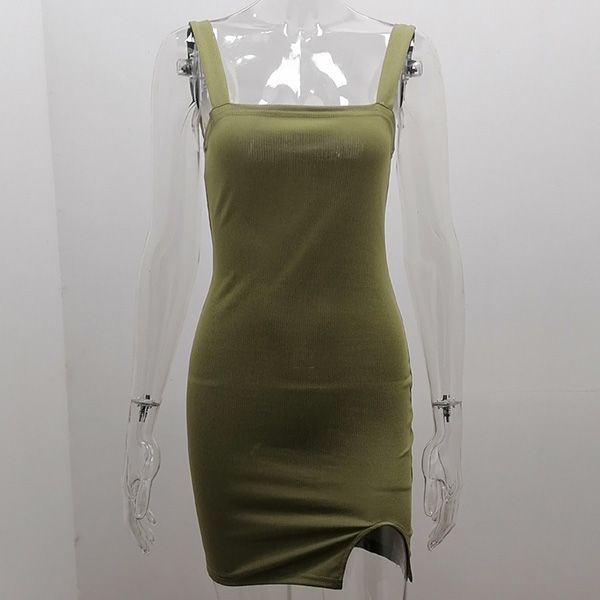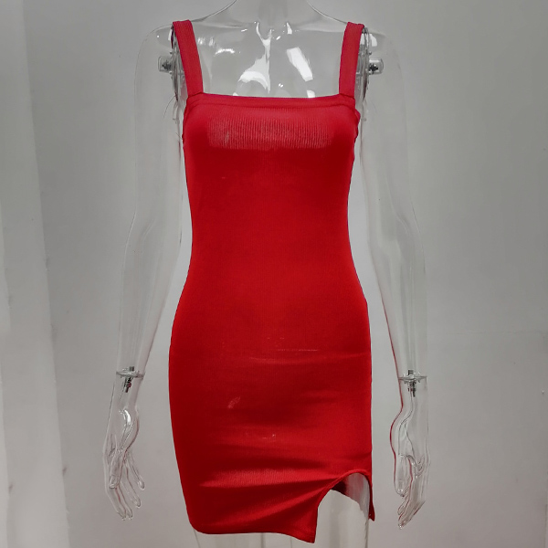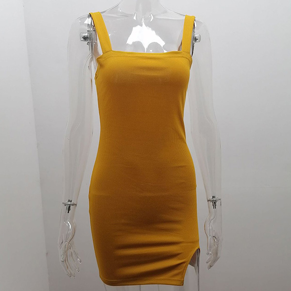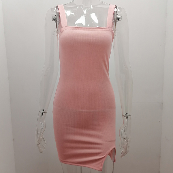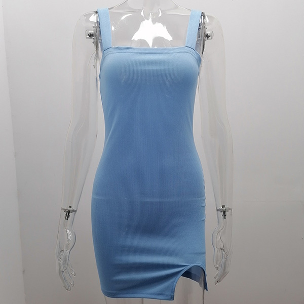 Sexy Backless Slit Hem Solid Color Slim Fit Sling Dress