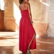 Sexy Backless Slit Hem Solid Color Sling Dress