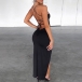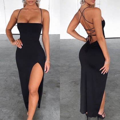 Sexy Backless Slit Hem Solid Color Sling Dress