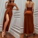 No matter when and where you are,you can easily be the focus in this dress. Sling style,designed with backless and slit hem design,this dress is sure to offer you an alluring look. Meanwhile,the high waistline design also can showcase your slender figure. So why not slip into this piece to express your beauty and charm?