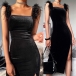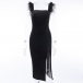 Sexy Backless Slit Hem Tassel Spliced Slim Fit Sling Dress
