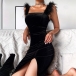 You have no need to worry about what to wear for your fancy events if you have this dress in your team. Sling style,with backless and slit hem design,this dress can make you look sexy and flirty. Moreover,the tassel details at the shoulder part will make this piece look more attractive. Dress it up with your sexy heels and elegant clutch for a more stunning look.