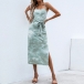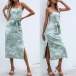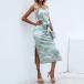 Sexy Backless Slit Hem Tie-dye printed Slim Fit Sling Dress