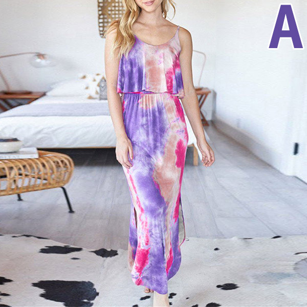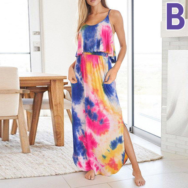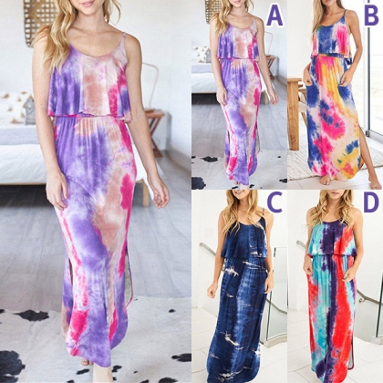 You can easily be a pleasant sight when you go out with this dress. Sling style,the backless and slit hem design can lend you a dash of sexy and flirty vibes,while the tie-dye printed details will make this piece look more eye-catching. You can just slip into this piece to express your beauty and charm.