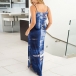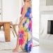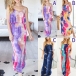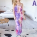 Sexy Backless Slit Hem Tie-dye Printed Sling Dress