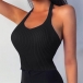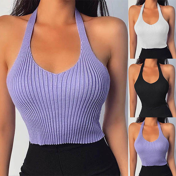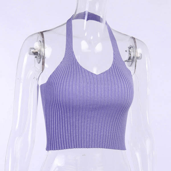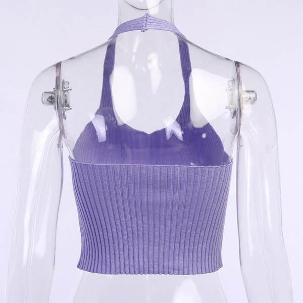 Sexy Backless Solid Color Halter Knit Top