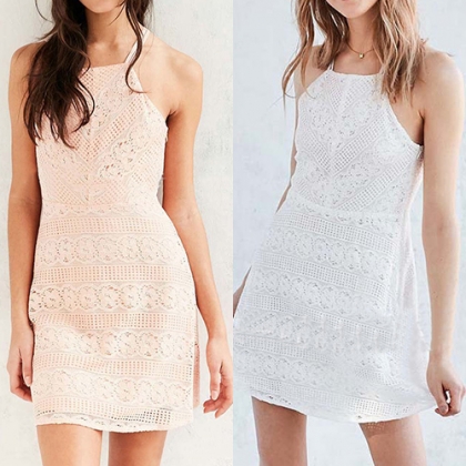 window with this lace dress. Sling style,with backless design,sexy and charming. Paired with