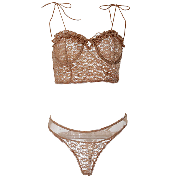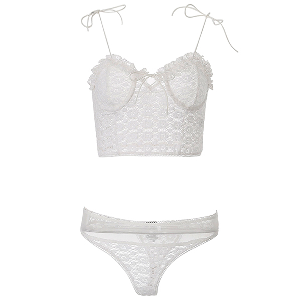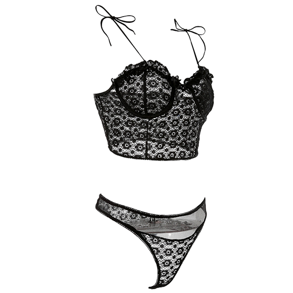 Sexy Backless Solid Color Lace-up Lace Lingerie Set