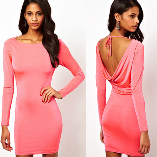 which will bring you a bright mood. Backless style,with long sleeve,slim fit and package hip design. Take it to express your beauty!