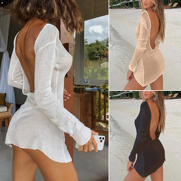 For your beach days,you can trust in this knit beach dress to have a flirty beach look. Solid color style,the backless design make this piece look so sexy and alluring,while the fit silhouette design can showcase your slender figure. You can match it with your sexy bikini set to enjoy your beach days and tropical getaways.