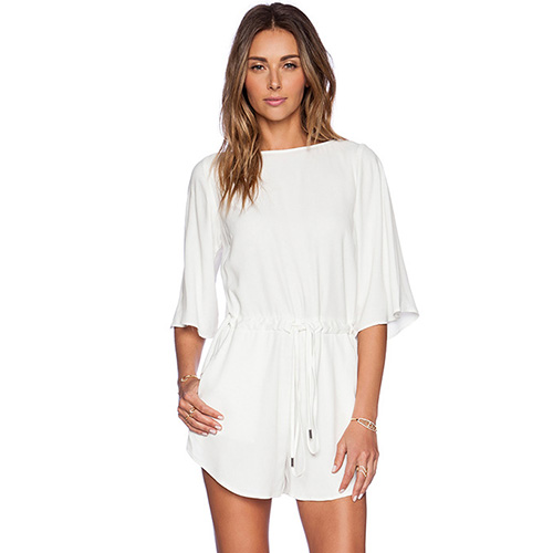 shows women's beautiful and fair skin. Solid color style,waist part with drawstring