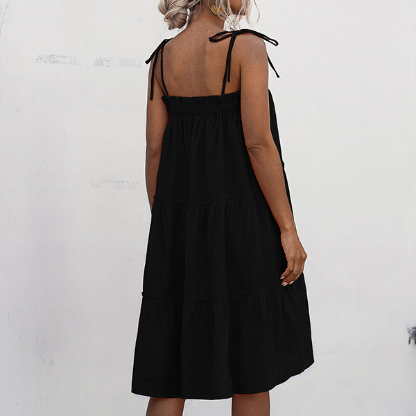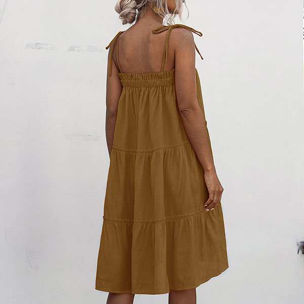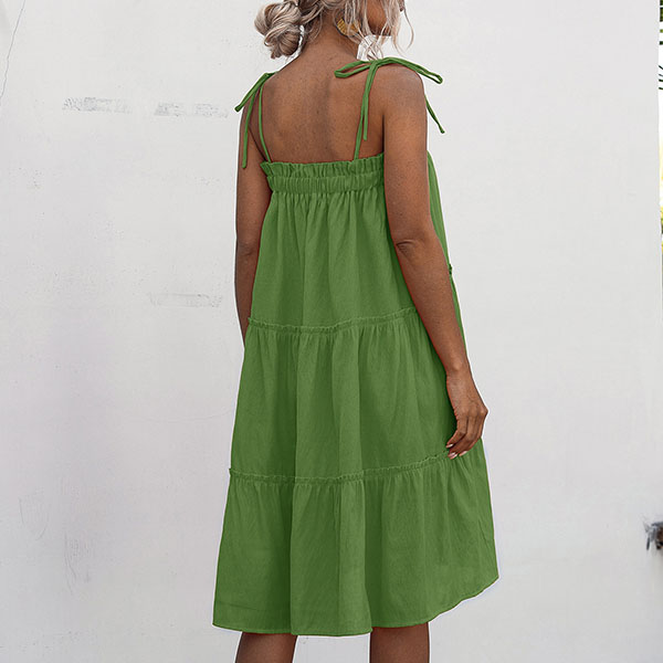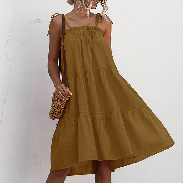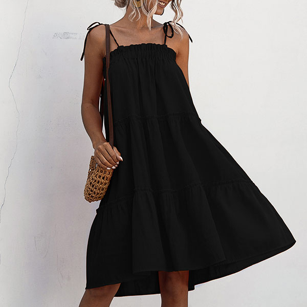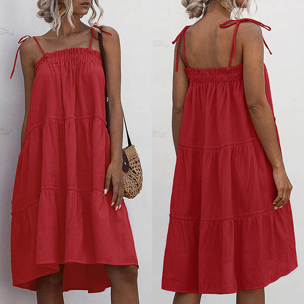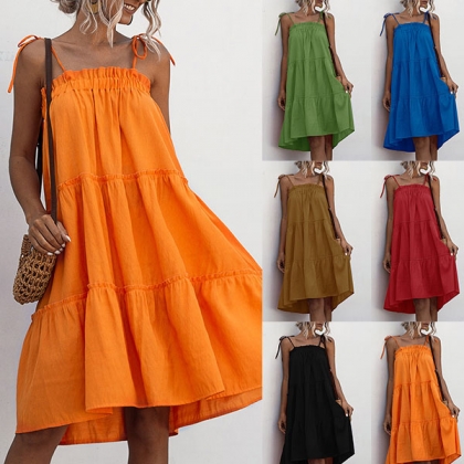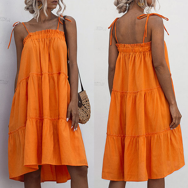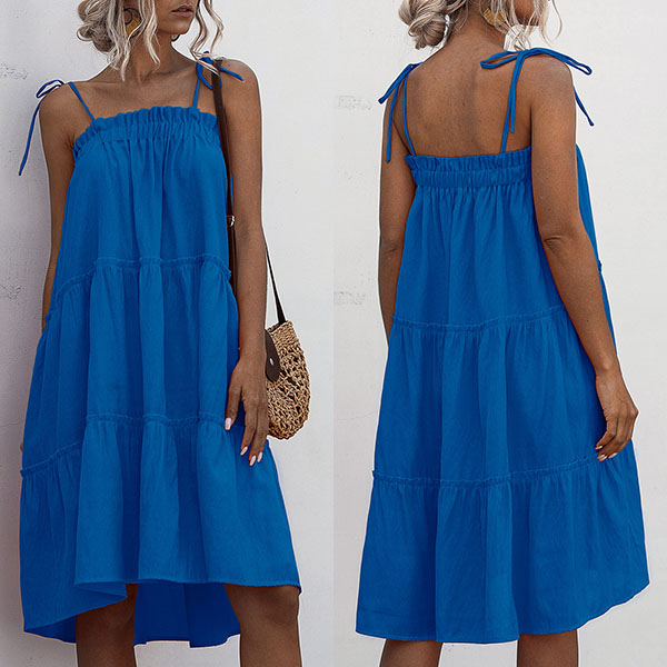 When the sunny days hit,you can just step out with this cake dress to greet it. Sling style,with solid color and a loose silhouette,this piece not only can give you a comfortable day,but also can exude your sexy and flirty vibes.