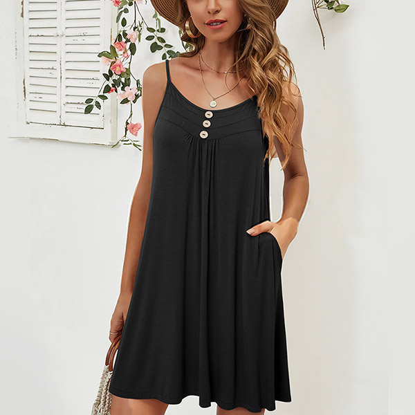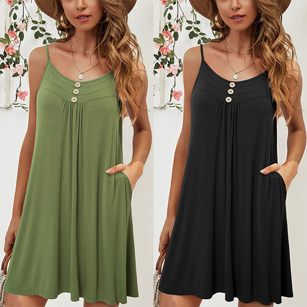 If you are looking for a perfect dress for your summer days,then you can just have a try this piece. Sling and backless design will exude your feminine side. Crafted from soft and breathable fabric,with a loose silhouette,this piece also can ensure you a cool and comfortable day. It is worth to be your partner in these summer days.
