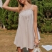 As for a sexy,charming and beautiful summer look,this dress can be your perfect addition. Sling style,with backless design,which can exude your feminine appeal. Moreover,the ruffle design will make this piece look more attractive. On these sunny days,you can match with a sweet straw hat to win more envious eyes.