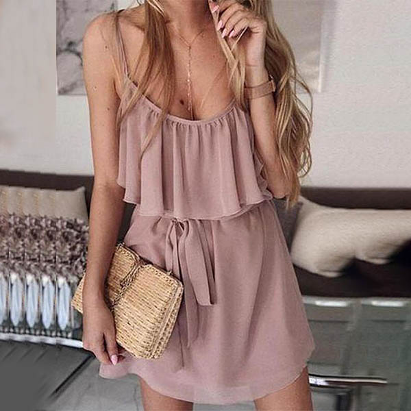 Greet the sun-soaked summer days with this relaxed dress. Solid color style,the backless and sling design can make you look sexy and flirty,and the ruffle design will further enhance its charm. Add it to your summer wardrobe and it won't let you disappointed!