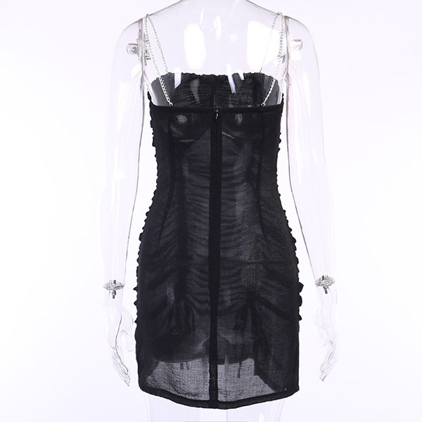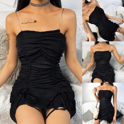 Sexy Backless Solid Color Slim Fit Chain Sling Dress