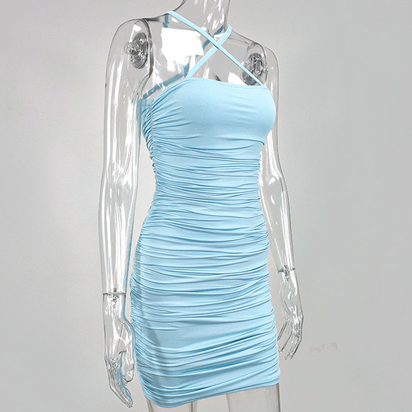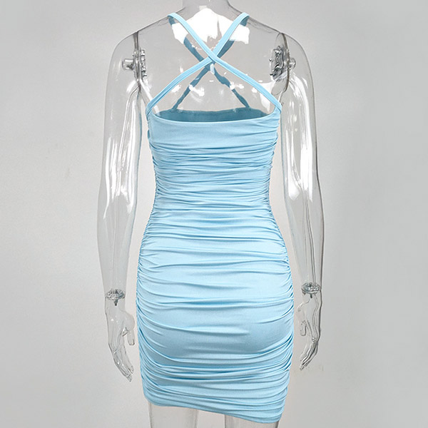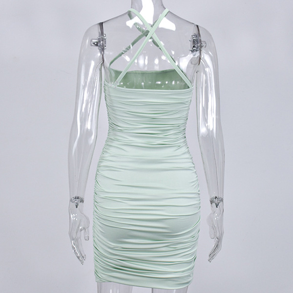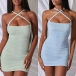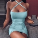 Sexy Backless Solid Color Slim Fit Crossover Sling Dress(The size runs small)