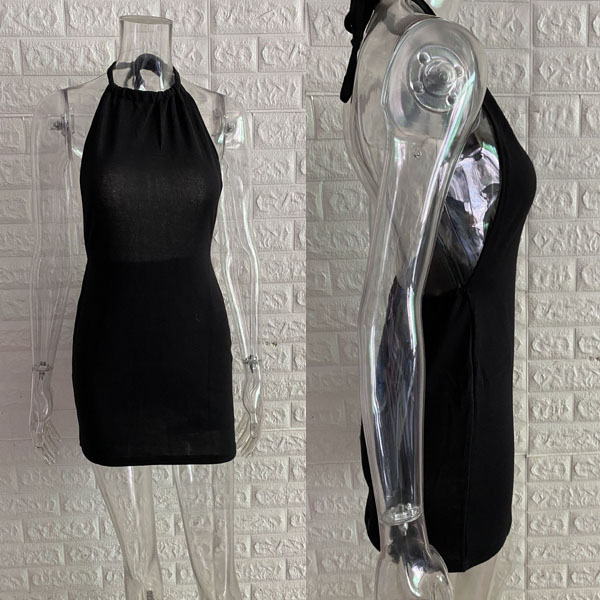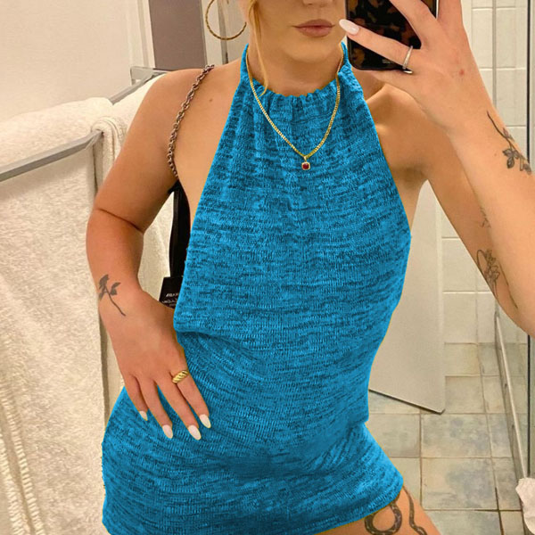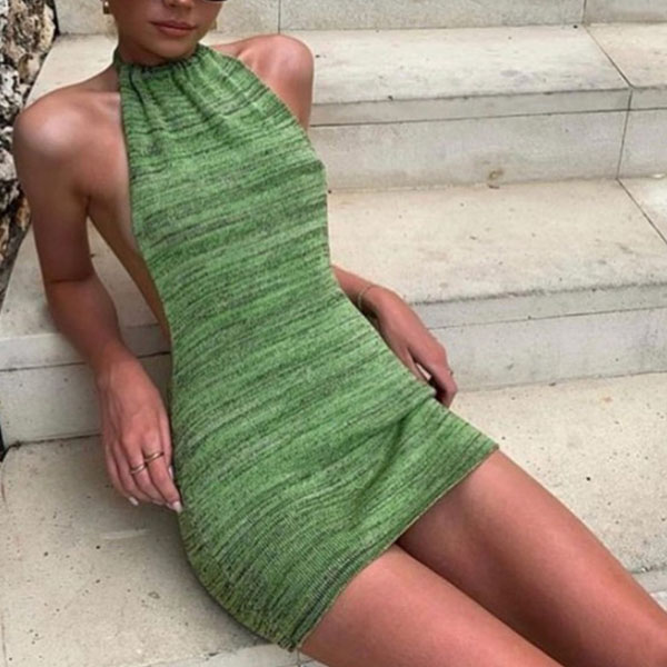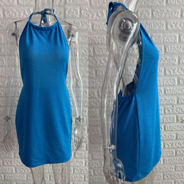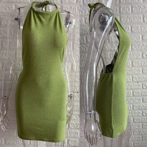 Sexy Backless Solid Color Slim Fit Halter Dress