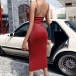 Sexy Backless Solid Color Slim Fit Halter Dress
