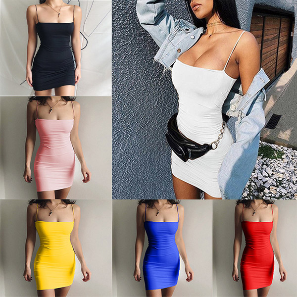 Sexy Backless Solid Color Slim Fit Sling Mini Dress