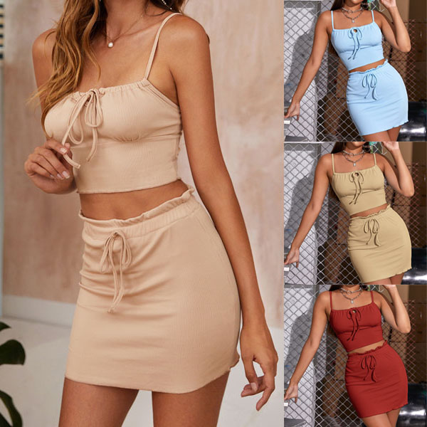 Wanna look sultry,sexy and flirty,then you can dress yourself up with this two-piece set. Solid color style,including a backless sling crop top and a high waist skirt,this two-piece set is a good weapon to flaunt off your sexy and seductive curve. So,girls,don't be shy,just slip into this two-piece set to express your charm.