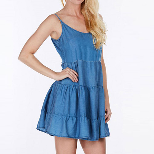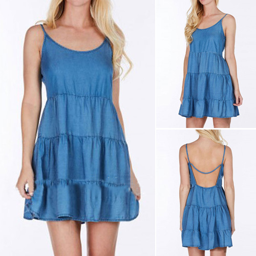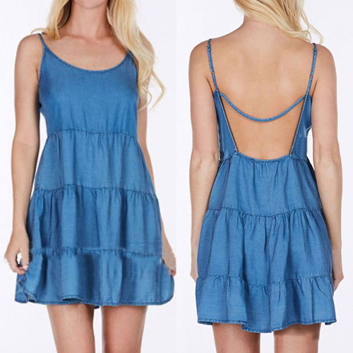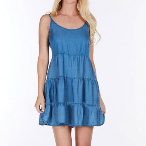 When the hot summer comes,you can just slip into this denim dress for a cool day as well as