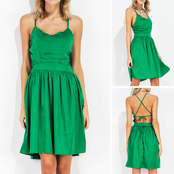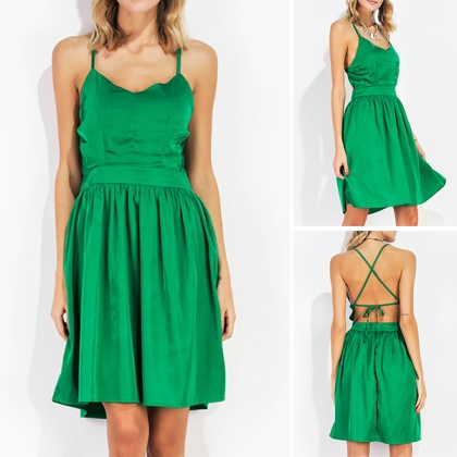 Boasts a bright green tone,which makes it easier for you to stand out in the crowd. Sling style,with backless design,this dress