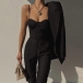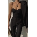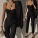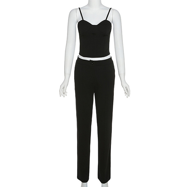Solid color style,including a backless sling top and a high waist pants,this two-piece set not only can showcase your slender figure,but also can exude your sexy and flirty side. You can also match it with the same color blazer for your working occasions.