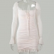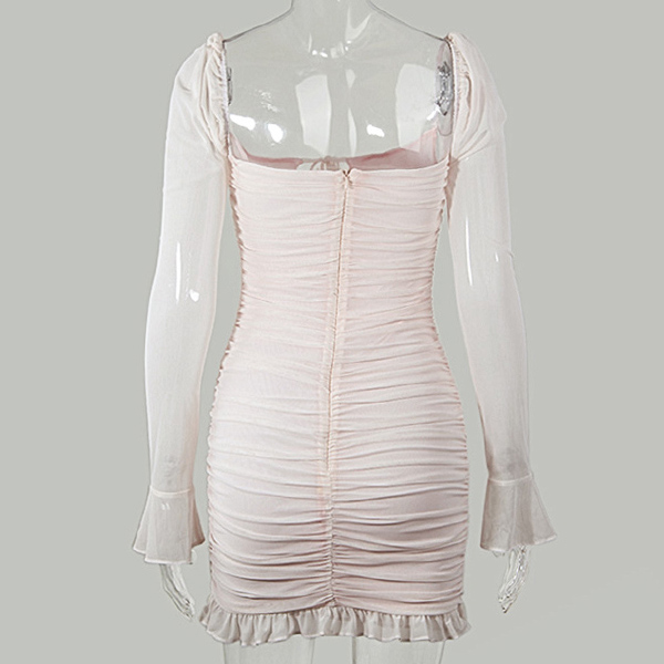 Sexy Backless Square Collar Gauze Spliced Long Sleeve Ruffle Hem Slim Fit Dress