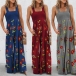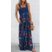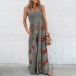 Sexy Backless Square Collar High Waist Printed Sling Maxi Dress