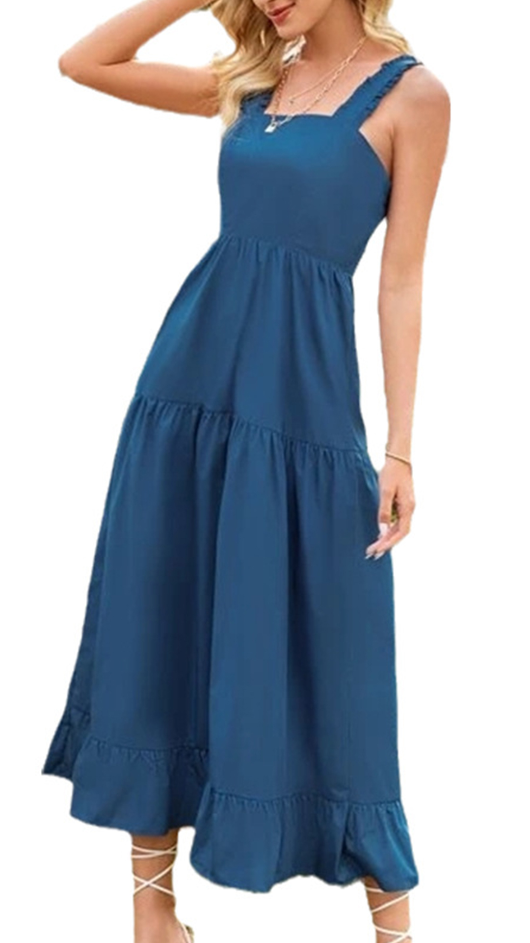 Outfitted with the features of sexy and charming and rendered into a more flattering and feminine design, this sling dress is the key to an effortlessly chic and sultry look. Crafted in a solid color,the backless and square collar design can give you a more alluring look. Designed with high waist and a maxi length,this dress also can showcase your slender figure. Just slip into this dress to express your beauty and charm.