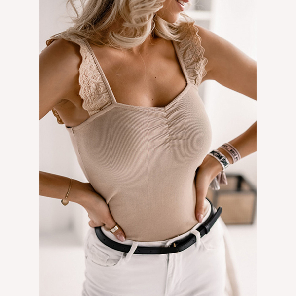 Sexy Backless Square Collar Lace Spliced Solid Color Slim Fit Sling Top