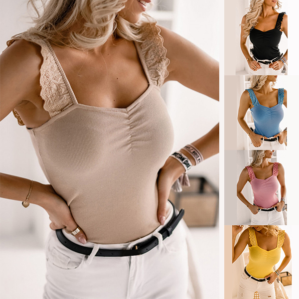 Make your summer wardrobe ensemble more complete by adding this sling top. Solid color tone design makes it look simple yet generous,while the backless,square collar and lace spliced design will lend you a dash of sexy and flirty vibes. All-match design allows to be matched with different style bottoms.