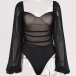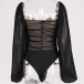 Sexy Backless Square Collar Lantern Sleeve Gauze Spliced Bodysuit
